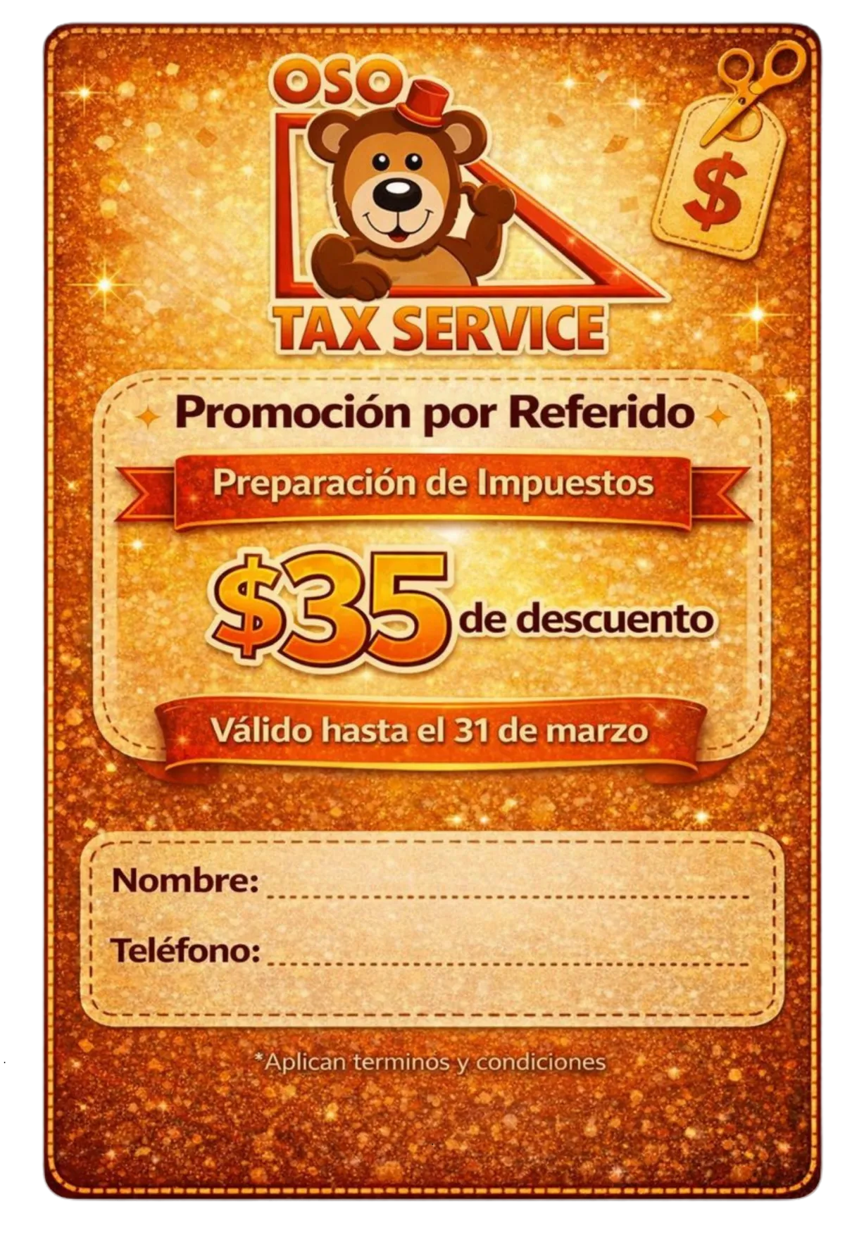 Válido únicamente para una (1) preparación de impuestos sobre la renta.